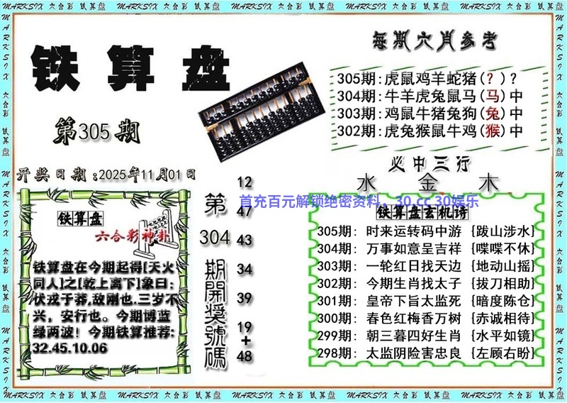 | 304期 | 0.2.3 | 2.3.5.6.9 | 开:马48错 |